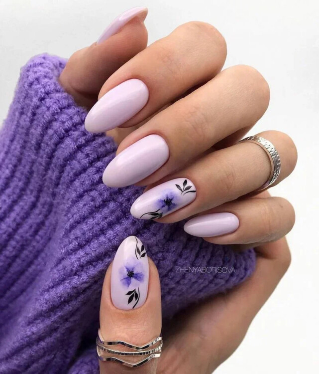 Навесні 2021-2022 року просто неможливо обійтися без квітів в дизайні нігтів. Це найпопулярніший і трендовий варіант дизайну. Можна вибирати як квітковий розпис, так і наносити на один нігтик маленькі бутончики. Навесні варто звернути увагу на зелений, жовтий, бузковий і рожевий кольори лаку.