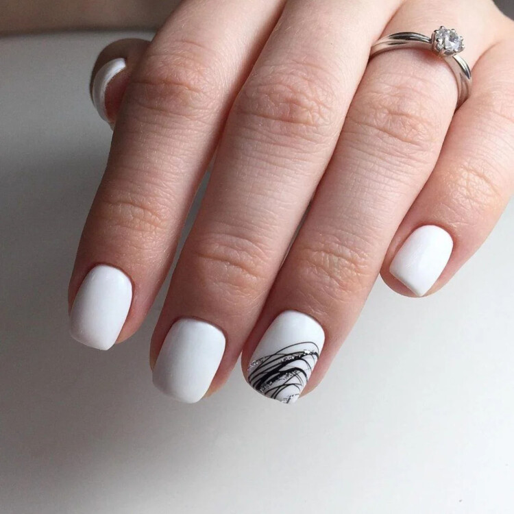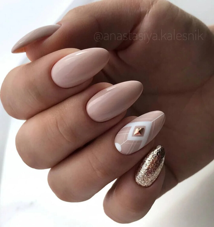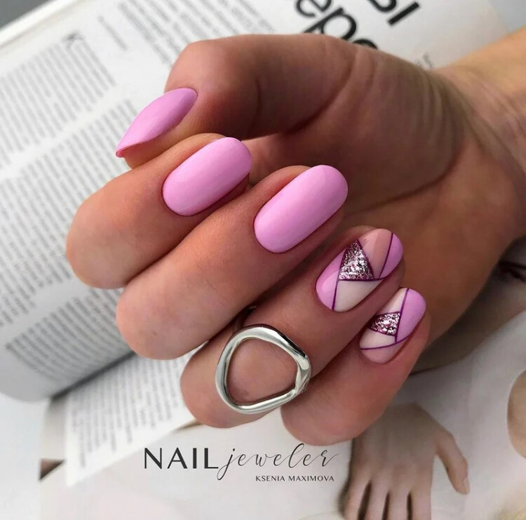Цей дизайн сподобається жінкам, які віддають перевагу мінімалістичному манікюру. Геометрія завжди виглядає елегантно і витончено. У дизайні можуть використовуватися найрізноманітніші геометричні фігури, а також смужки різної довжини і товщини. Як колір покриття, так і самого малюнка може бути абсолютно будь-яким, тут немає ніяких обмежень чи заборон.