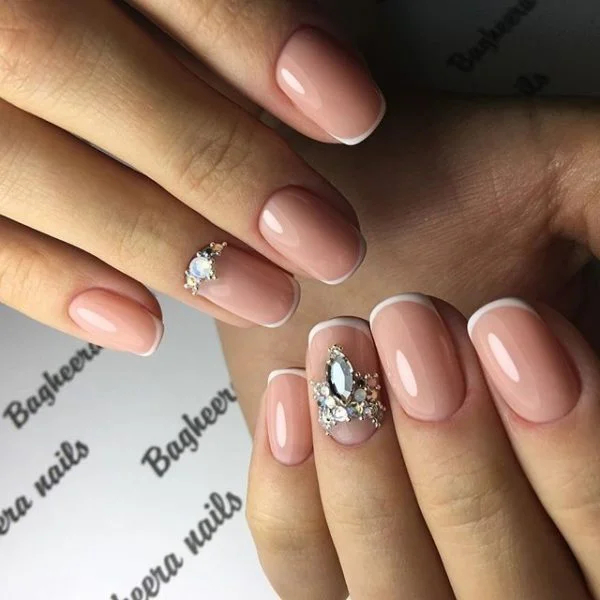 У весняному дизайні нігтів обов’язково повинні бути присутніми стрази. Але найкраще зупинити вибір на невеликих камінцях, що нагадують розсип діамантів. Маленькі кристалики стануть прекрасним доповненням будь-якого дизайну і додадуть блиску в повсякденний образ.