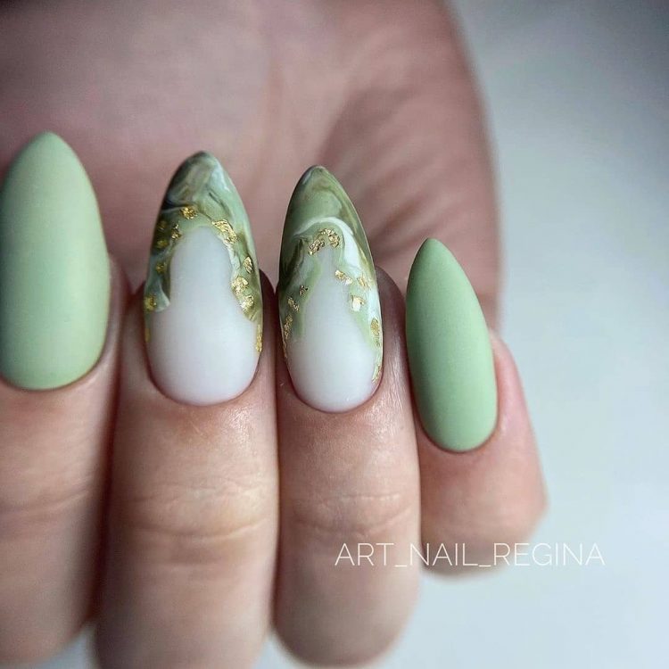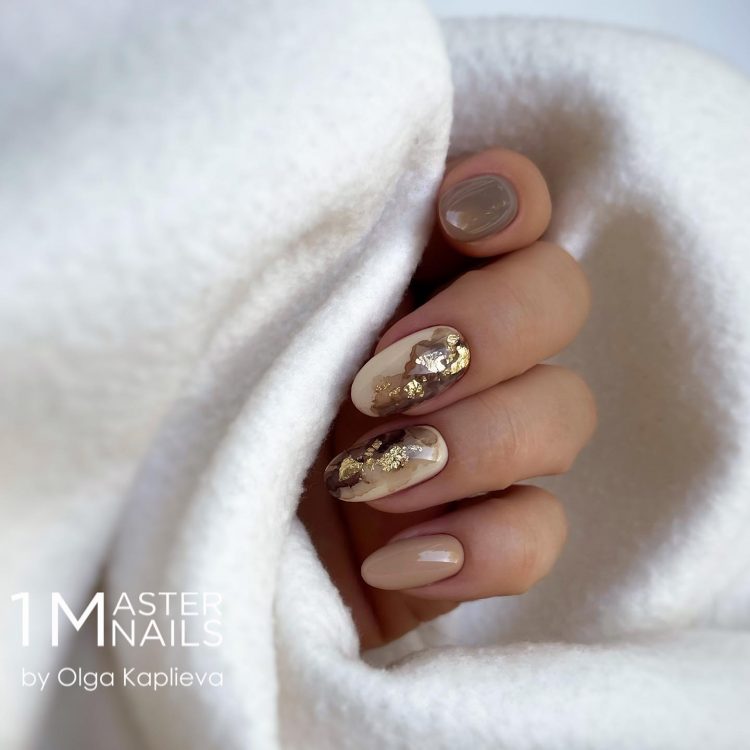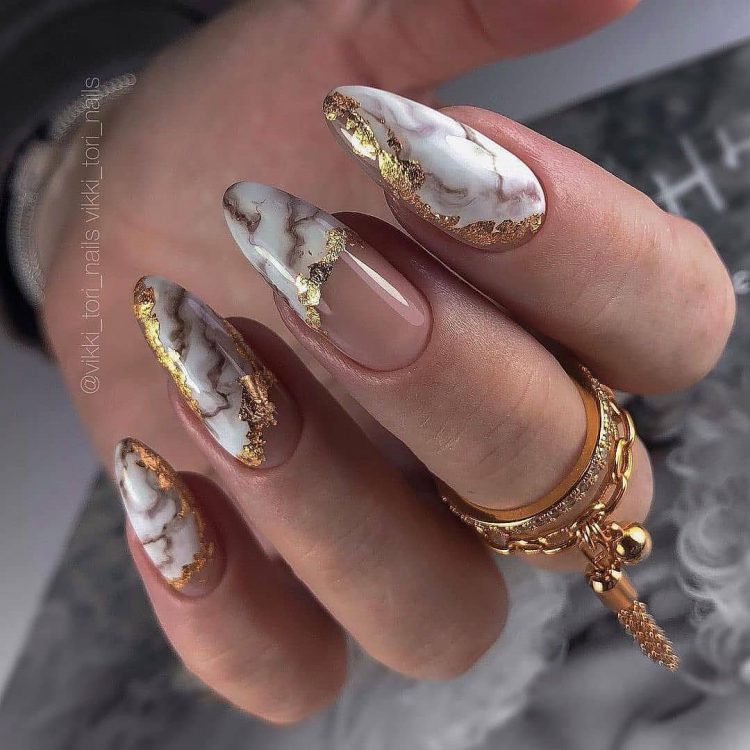 Ще один модний дизайн, який навряд чи колись перестане бути актуальним. Особливо має попит манікюр з мармуровим малюнком, який однаково добре підходить діловим жінкам і молодим модницям.