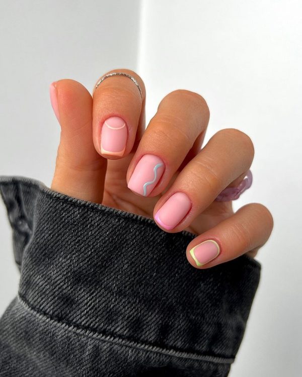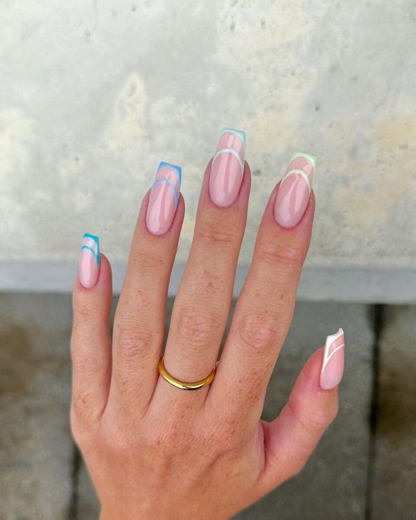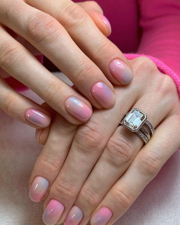 Не варто боятися змішувати кілька відтінків. В цьому сезоні актуальні дизайни “аура” та градієнт. Якщо з’єднати в них кілька пастельних тонів, нейл-арт не виглядатиме надто яскраво.