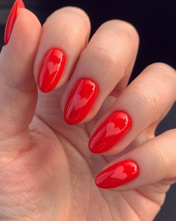 Нігтьову пластину можна прикрасити зображеннями сердець або квітів.