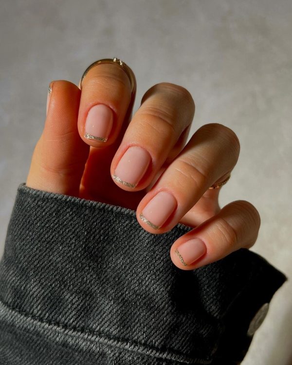 Блискучі дизайни не завжди помітні. Якщо зупинитися на невеликих фігурах із металізованих ниток чи фольги, манікюр вийде мінімалістичним та ненудним.