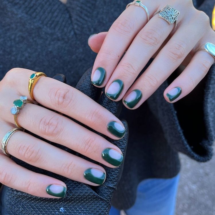 Аналог френчу – лунки (або зворотний френч). Цей мінімалістичний дизайн не такий популярний, тому не встиг набриднути. Важливо вибрати нейтральний відтінок покриття. Нехай акцентним залишиться лише графічний елемент біля основи нігтя.