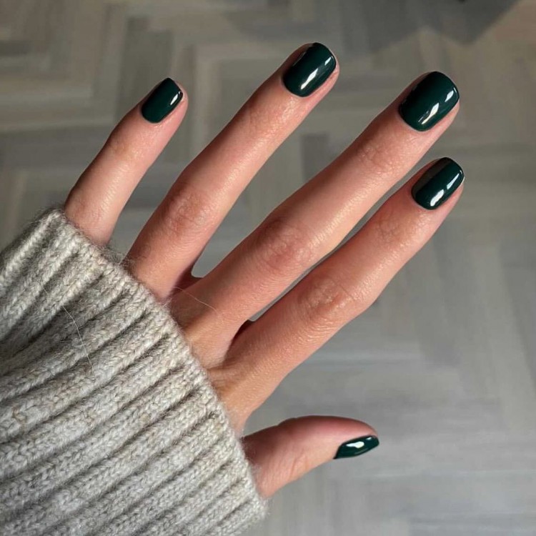 Ефектний і дорогий темно-зелений відтінок, здається, був придуманий спеціально для новорічної ночі. Він чудово виглядає на нігтях будь-якої довжини та форми, а ще фантастично розкішно поєднується з великими кільцями із жовтого золота або з малахітом. Темно-зелений, червоний і золотий – три типові відтінки американського Різдва, і ви можете обіграти їх у своєму святковому образі в одязі, манікюрі та макіяжі.