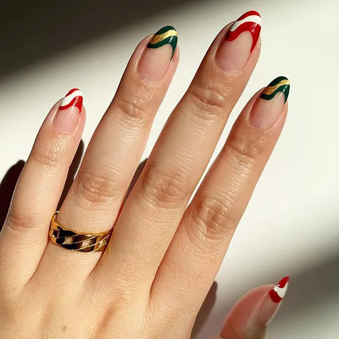 З чим ще, крім мандаринів та шампанського, зазвичай асоціюється Новий рік? Звичайно, з цукерками! Барвисті льодяники можуть доповнити ваш новорічний манікюр. Наприклад, ви можете попросити свого нейл-майстра намалювати на кінчиках нігтів карамельну тростину – цей варіант дуже красиво виглядає на ніжно-салатовому фоні.