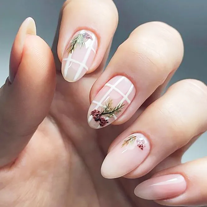 Неймовірно ніжно на ваших нігтях виглядатиме малюнок у вигляді кедрових шишок або засніжених ялинових гілок. У цьому випадку ваш майстер з манікюру має бути справжнім художником – тоді подруги та колеги точно розглядатимуть ваш манікюр як справжній витвір мистецтва!