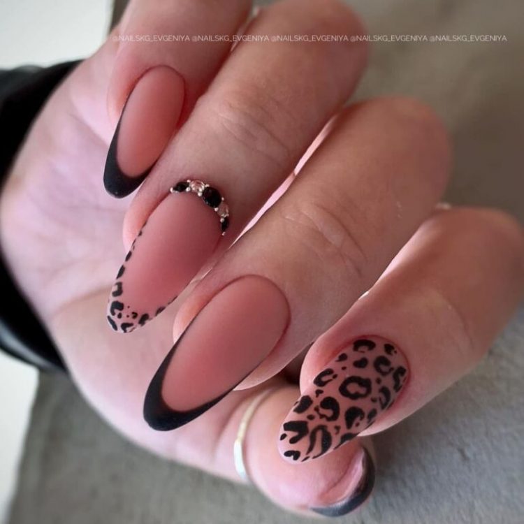 Щоб нігтики з нюдовим покриттям не виглядали надто спокійно, їх можна доповнити анімалістичними принтами. Адже «хижі» забарвлення є доволі актуальними сьогодні.