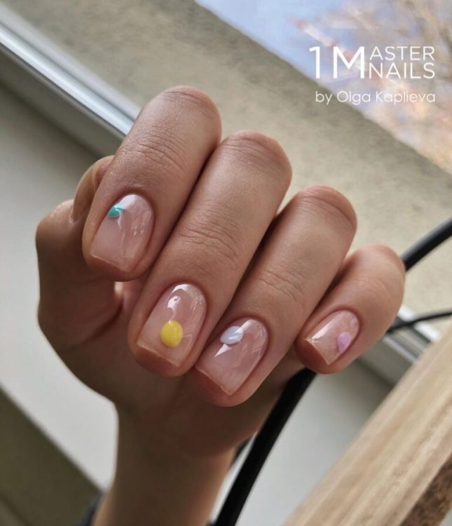 Якщо захотілося привнести милий акцент, слід додати в свій манікюр сердечка з глітеру, написи зі слайдерів, малюнки з гілочками і листочками, стемпінг, візерунок з горошком або розсип кристалів. Нюдовий манікюр на короткі нігті 2022 представлений у величезній різноманітності стилів.