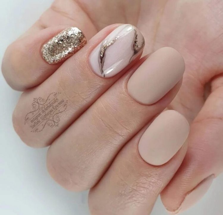 Останні тенденції пропонують комбінувати нюдові кольори із золотистими або сріблястими декоративними елементами. Не менш вражаюче виглядає геометричний візерунок у подібному виконанні, техніка «павутинка», анімалістичні мотиви із забарвленням зебри, леопарда та пітона.
