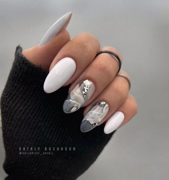 Овальна форма нігтів виглядає м’яко та ніжно. Вона посилює природну чарівність. Такий манікюр доречно виглядає у будь-якому віці, і він може стати родзинкою зимових образів.