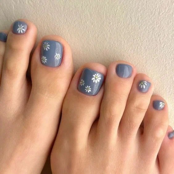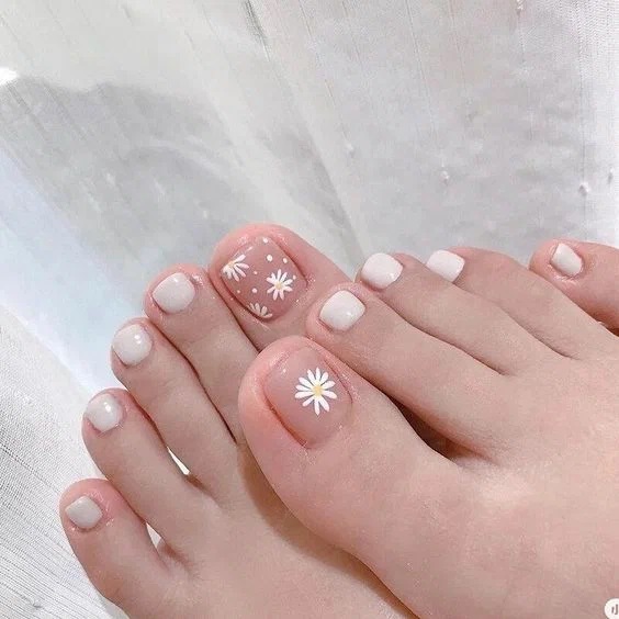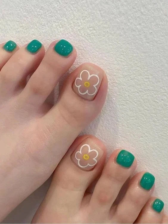 Як щодо простого та іронічного дизайну з квіткою? Такий точно підніматиме настрій і вам, і всім оточуючим! Цей педикюр ідеально підходить для босоніжок з тонкими ремінцями!