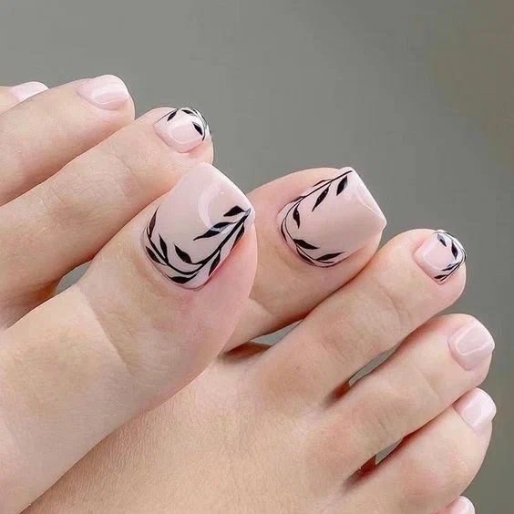 Флористична тематика дуже популярна у дизайні як манікюру, так і педикюру, подивіться як ніжно та ефектно одночасно виглядає такий контрастний варіант.