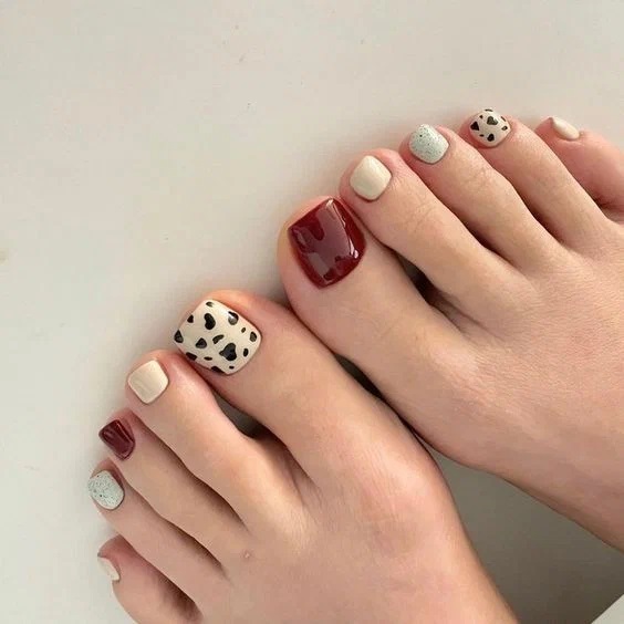 Комбінуйте різний дизайн та відтінки на кожному нігті – це простий, але дуже ефектний варіант дизайну.