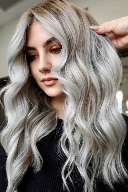 На піку популярності все також залишається двокольорове фарбування волосся з затемненими корінцями і освітленими попелястими кінчиками. В даному випадку, крім красивого волосся, ви також отримуєте ідеальний прикореневий об’єм, а також візуальну густоту на своїй шевелюрі.