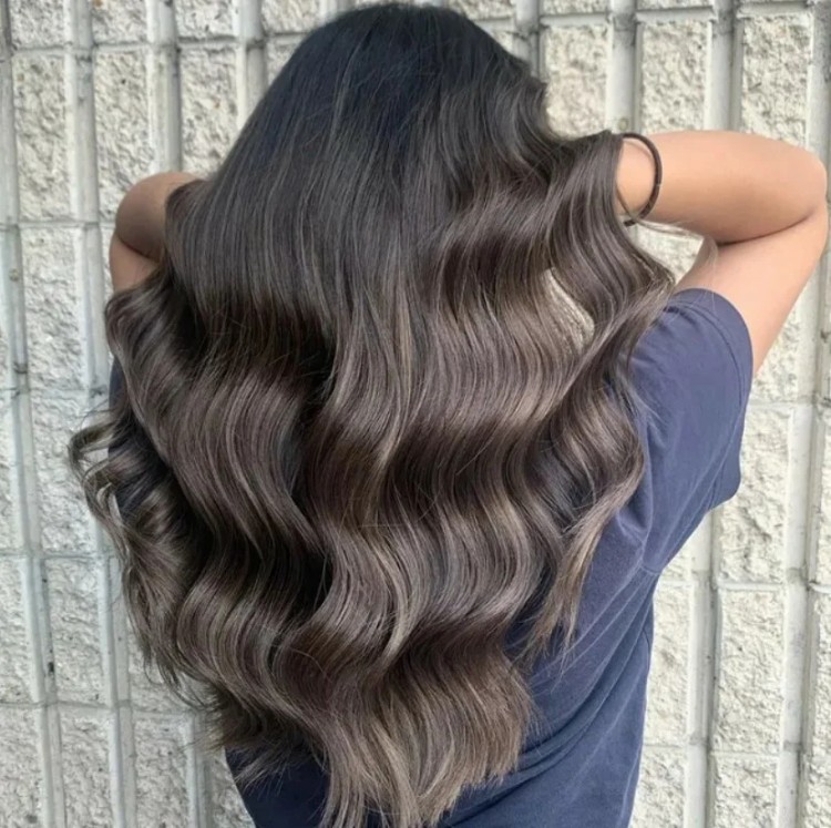 Легкий, злегка вловимий попелястий серпанок на темному волоссі – чудовий варіант поекспериментувати зі своїм іміджем. Тонкі пасма волосся благородного холодного відтінку освіжають зовнішність і, навіть, молодять її. Таке ефектне фарбування чудово виглядає, як на прямому, так і на кучерявому від природи волоссі.