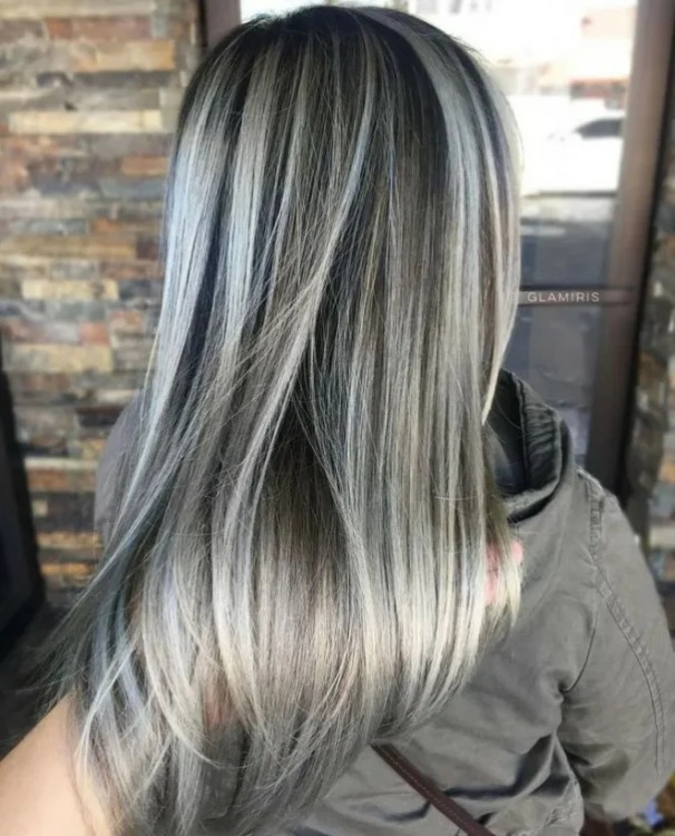 Брондування у попелястому відтінку на темному волоссі виглядає яскраво і виразно. Якщо хочете поступово виходити із чорного кольору, обов’язково придивіться до подібного фарбування волосся. Підтримувати благородний відтінок срібла на волоссі допоможуть спеціальні тонуючі шампуні та кондиціонери.