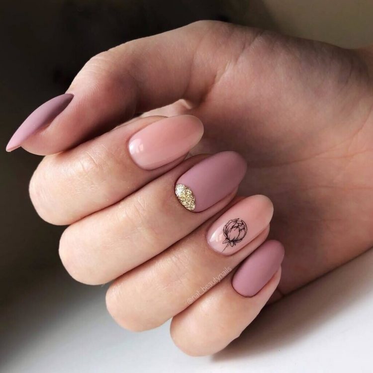 Матове рожеве покриття, максимально наближене до природного тону шкіри, чудово виглядає у будь-яких комбінаціях та на нігтях будь-якої форми/довжини. Кілька штрихів у вигляді чорних ліній завершать дизайн та наблизять його до ідеального.