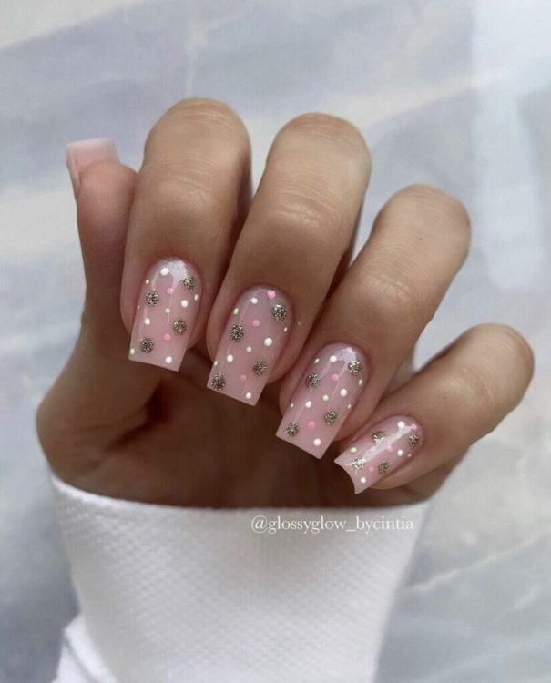Манікюр у рожевих відтінках незмінно виглядає романтично, жіночно та привабливо, особливо, якщо він зроблений у бежево-рожевій кольоровій гамі та доповнений «милими» малюнками.