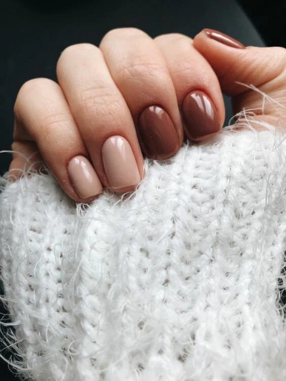 Кавова палітра вважається безпрограшним варіантом для манікюру на кожен день. Вдалим вибором буде тандем із коричневого та молочного відтінків лаку. Глянець та мінімальна кількість дизайну – найкращий вибір для сучасних естеток.