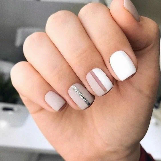 Існує безліч варіантів манікюру в ніжному нюдовому, молочному, а також бежевому кольорах, які на всі 100% гармонійно поєднуються з короткими нігтями.