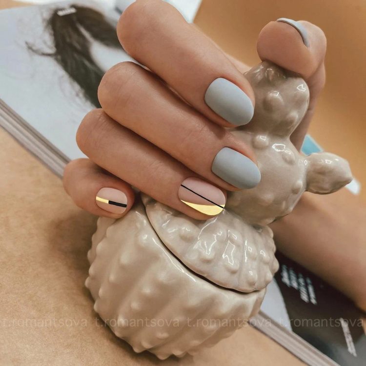 Чудовим повсякденним варіантом можна вважати манікюр в універсальних відтінках сірого кольору, який чудово виглядає як з рожевими/бежевими тонами, так і з яскравими.