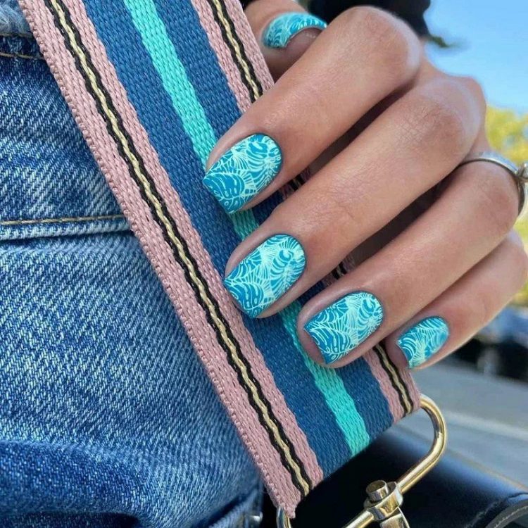Якщо дизайн нігтів в блакитних тонах зробити трохи яскравішим, то манікюр виглядає куди більш привабливим і однозначно “говорить” про те, що модниця, що обрала його, налаштована по-весняному.