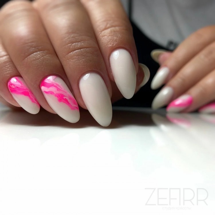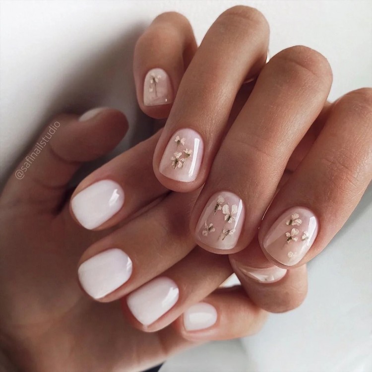 Багато знаменитостей також стали відмовлятися від яскравих дизайнів, вибираючи максимально природні відтінки. Одним з головних відтінків в 2021 році став саме молочний. Він дуже сподобався тим, хто шукав золоту середину між природним відтінком нігтів і ідеально білим.
