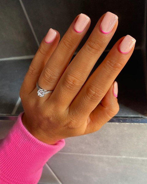 Подобається тренд на milky nails, але хочеться яскравіший манікюр? Пропонуємо додати трішки неону і зробити зворотний френч. Такий манікюр візуально подовжить ніготь, а поєднання нюда з неоном буде виглядати дуже круто. Обов’язково візьміть цю ідею на замітку.