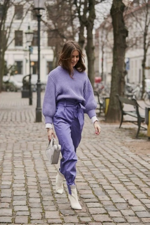 Носіть монохромний фіолетовий образ або поєднуйте темний відтінок фіолетового з бузковим. Бузок, тобто світло-фіолетовий, є одним з кращих весняних кольорів в цьому році і додасть вам дуже сучасного вигляду.