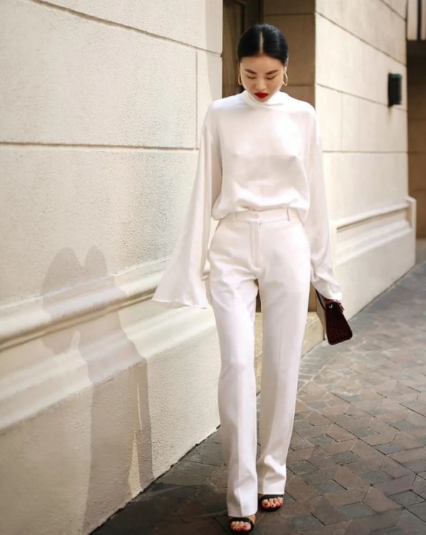 Монохромний образ в білому кольорі виглядає елегантно і стильно. Це ідеальний вибір для літа.