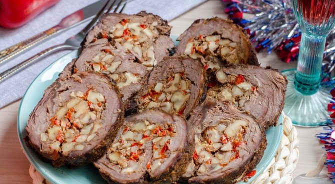 Рулет із яловичини з солодким перцем та волоськими горіхами