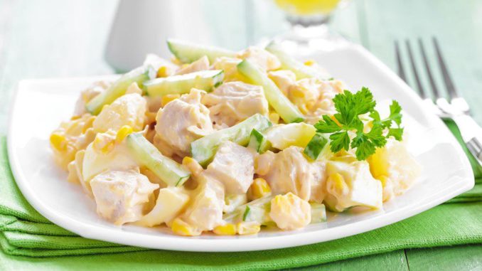 Якщо Ви полюбляєте салати, в яких незвичне поєднання інгредієнтів, то цей рецепт є ідеальним варіантом. Салат з ананасом, куркою та кукурудзою має неперевершений смак. Він виходить нереально апетитним та просто тане в роті.