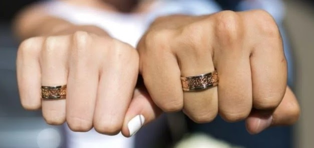 На безымянный палец мужчины традиционно надевают обручальные кольца.