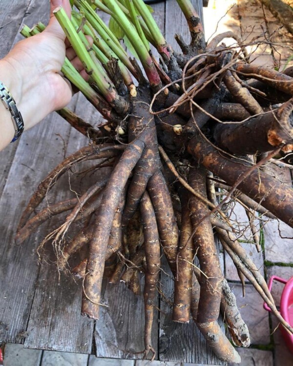 Кореневище перед поділом на дрібні частини потрібно промити в проточній воді і залишити на кілька годин для просушування. Так воно стане менш твердим, і його буде легше ділити, не побоюючись пошкодити.