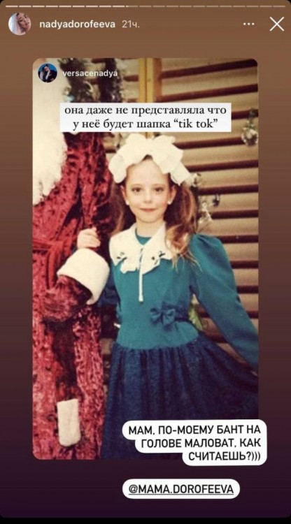 Також Надя Дорофєєва жартівливо звернулась до своєї мами. Співачка повідомила, що на голові в неї занадто маленькі банти. Фани відразу оцінили гумор Наді Дорофєєвої та засипали її компліментами.