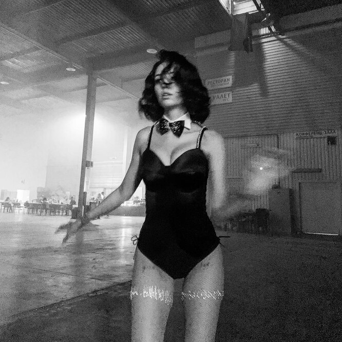 Артистка одягла атласний корсет і доповнила його колготками в сіточку. До сексуального аутфіту співачка підібрала краватку-метелика з білим комірцем і підв’язки для панчіх з блискучими стразами. Завершили провокаційний look класичні атрибути Playboy – накладні вушка і кролячий хвостик.