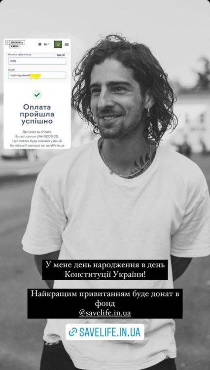Чоловік попросив фоловерів переказати гроші до благодійного фонду. У свій день народження артист теж пожертвував кошти на потреби ЗСУ.