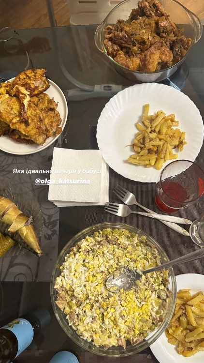 Там на неї чекав святковий стіл. Мама Михайла Кацуріна ретельно підготувалась до приходу гостей. Вона наготувала багато смачної їжі. “Яка ідеальна вечеря у бабусі”, – прокоментувала світлину Надя Дорофєєва. Співачка додала, що чудово провела час з мамою свого чоловіка.