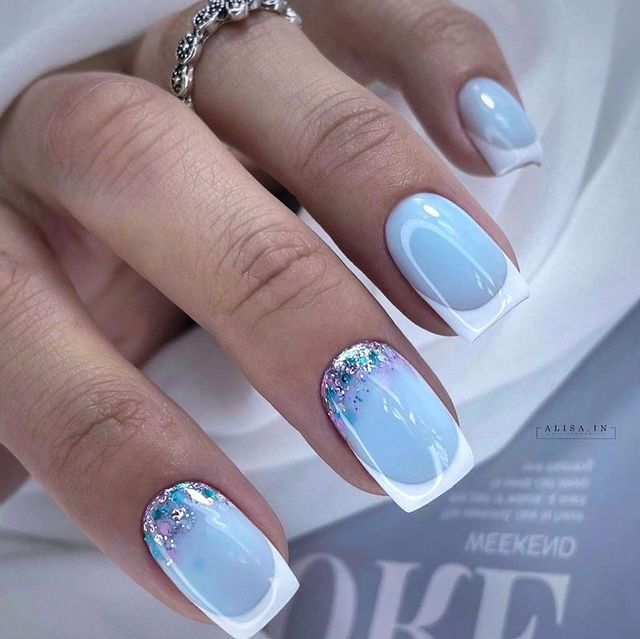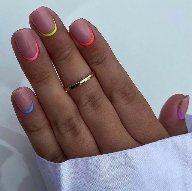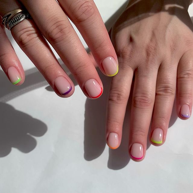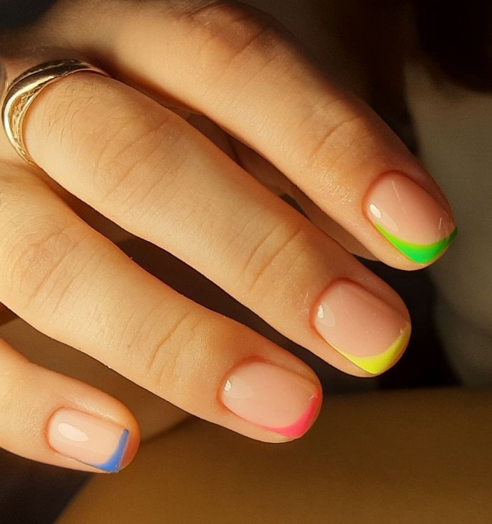 Трендовий френч на коротких нігтях може бути яскравим