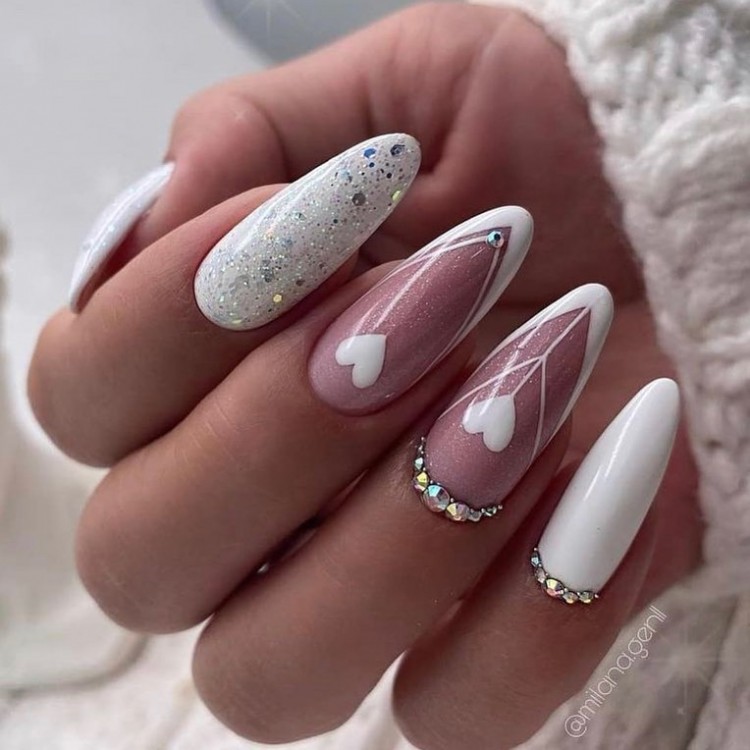 Френч, як акцент, в поєднанні зі стразами і геометрією (нареченої, придивіться!).