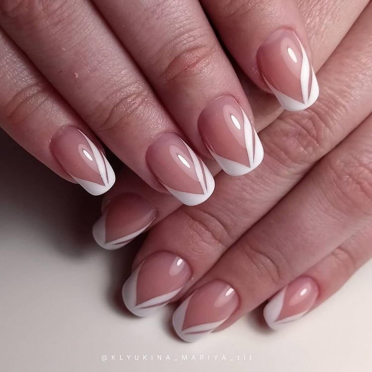 Френч на нігтях середньої довжини може бути з посмішкою незвичайної витонченої форми