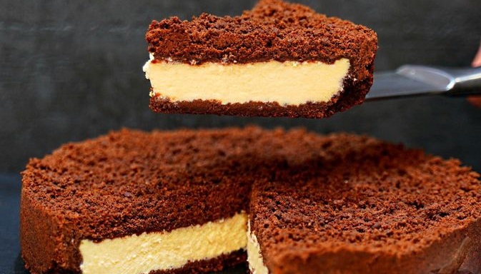 На вигляд цей десерт нереально смачний та апетитний. Він готується дуже просто та не потребує багато часу. Шоколадний пиріг з сирною начинкою виходить просто бездоганним.