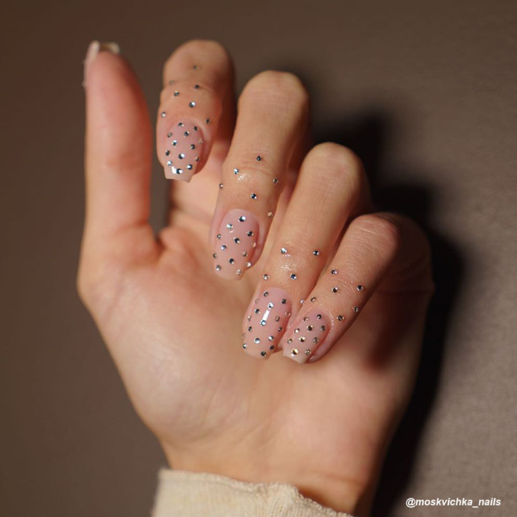 Вони можуть покривати собою весь ніготь або вишикуватися в рівну лінію по вертикалі і діагоналі. Найчастіше для нанесення цяток використовують акрилові фарби і дотс. В якості модного манікюру 2020 найбільше буде актуальні цятки з каміфубіків або страз.