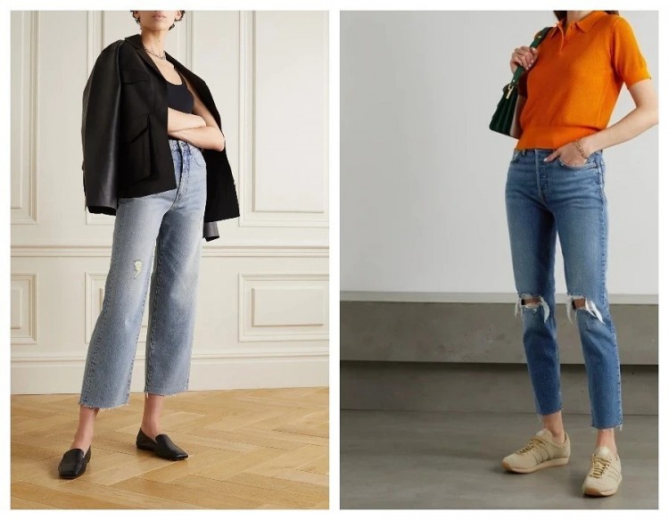Хоча в свіжих колекціях чимало моделей повної довжини або подовжених, укорочені джинси займають в числі новинок, як і раніше, чималу частину. Такі джинси можуть бути напівприталеного крою, прямими, трохи розкльошеними, широкими – в будь-якому випадку вони додають образу жіночності, оголюючи найтонше місце ноги, кісточки. Поки стоїть тепла погода, добре комбінувати укорочені джинси з туфлями або спортивним взуттям, а в більш холодний сезон можна додати високі шкарпетки (це теж тренд) або високі черевики.