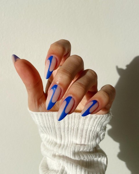 2022 – рік синього тигра. Якщо вірите у талісмани та символи, то синій манікюр принесе вам удачу та достаток. А якщо ні, то ви, мабуть, уже зрозуміли, що все насичене фарбами — в моді. Якщо зелений нагадуватиме вам про квітучу рослинність, то синій виглядає як літнє спекотне небо. Це благородний, дорогий колір, що привертає до себе увагу. До речі, такий колір добре виглядає в дизайні у вигляді смужок.