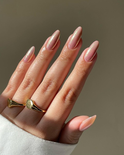 У освіжаючому келиху ігристого так гарно переливаються і лопаються бульбашки. Цей ефект можна повторити на нігтях. Блискучий манікюр кольору шампанського буде також дуже привабливим. Крім того, цей ненав’язливий колір поєднується з усім.