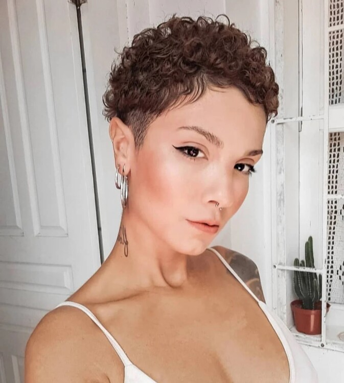 Якщо природа подарувала вам кучерики, але довгими вони вам набридли, можете наважитися на супер-коротку стрижку. Так за волоссям буде дуже просто доглядати але, якщо захочеться поекспериментувати з укладанням – подіум підкинув незвичайну і стильну ідею: можете повторити, тільки запасіться терпінням і потужними засобами для укладки завитків.