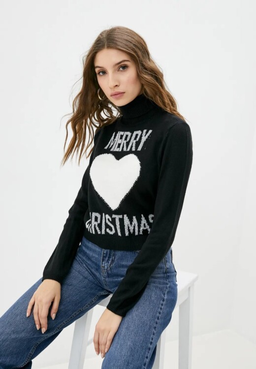 Ну а оскільки Новий рік і Різдво вже не за горами, тематичний светр точно зайвим не буде. Наприклад, ця модель чорного кольору з лаконічним написом буде доречна не тільки на новорічній вечірці, але й цілком органічно впишеться в повсякденний образ з джинсами або лаконічною спідницею.