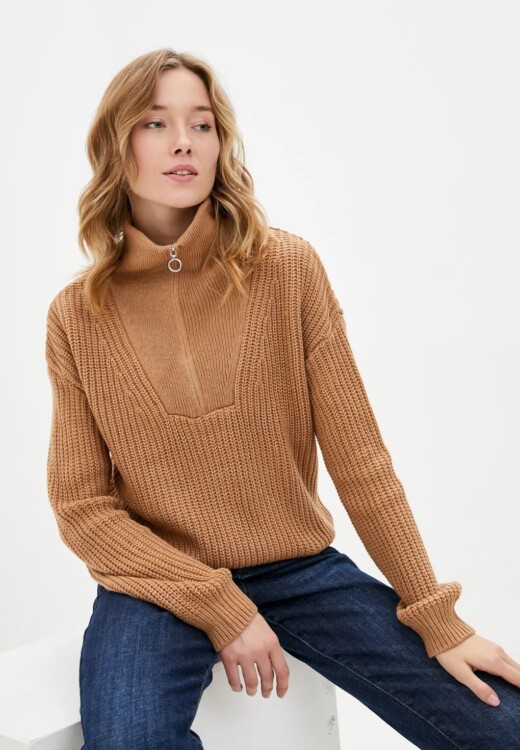 Мастхев всіх модниць в цьому сезоні – светр на блискавці в стилі 90-х років. Зірки стритстайлу пропонують нам носити його зі шкіряними джоггерами і ботильйонами на підборах-чарці або джинсами в вінтажному стилі і масивними кросівками. Цікавий образ можна отримати, якщо скомбінувати светр на блискавці з класичними брюками або палаццо, а під низ одягнути водолазку або топ з високим горлом. Вирушайте в такому образі в офіс або на зустріч з друзями, а в якості аксесуарів вибирайте лаконічну крос-боді і мінімалістичні кільця. Якщо ви прихильниця комфортних розслаблених аутфітів, носіть такий светр з трикотажними широкими брюками або затишними джоггерами.